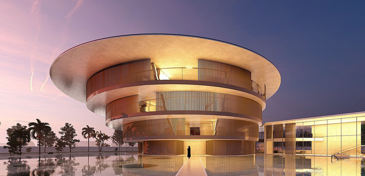 A cylindrical tower that, like an Islamic minaret (the Abbasid Minaret), blends into the surrounding landscape, becoming an iconic temple, a temple dedicated to living.