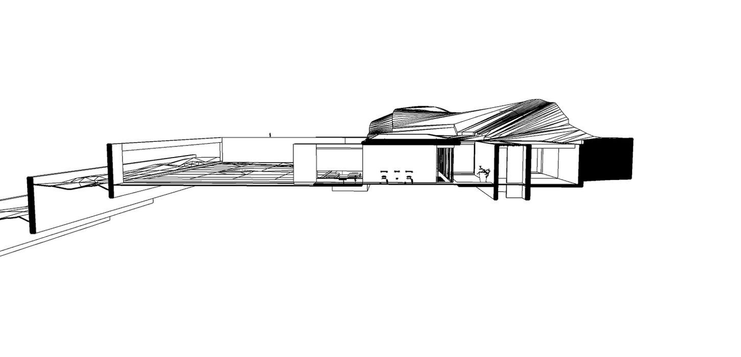 Un senso di calma e raffinatezza. Un giardino incornicia un luogo che diventa sacro attraverso la semplicità delle sue forme. La villa sembra incastonata nella montagna; il terreno, una terrazza sul mare, si apre, permettendo la vista dell'infinito. La villa si apre a sud, dove una piscina e un giardino si estendono dall'interno. Interno ed esterno si uniscono e sono protetti da una lama di cemento che sembra poggiare sulla roccia, proteggendo la villa e incorniciandone gli spazi.